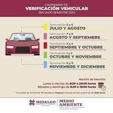 CALENDARIO DE VERIFICACIÓN VEHICULAR EN HIDALGO
