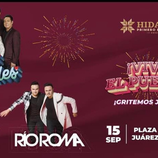El 15 de septiembre, gritemos juntos #VivaElPueblo! 🇲🇽. Asiste a Plaza Juárez en Pachuca desde las 17:00 horas al inicio del programa cultural. Posteriormente, disfruta de la música de Río Roma y los Los Ángeles Azules. ¡No faltes, la diversión está garantizada!