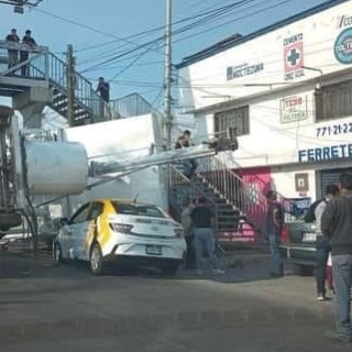 EN PACHUCA, HIDALGO CAE REVOLVEDORA SOBRE UN TAXI.