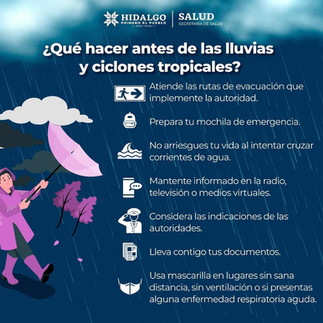 Prepárate antes de las lluvias y ciclones tropicales: limpia desagües y coladeras, asegura puertas y ventanas, ten a la mano un kit de emergencia y sigue las alertas oficiales. 🌧️